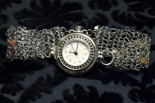 A watch...I needed one, I think I'll share this one on Etsy though, I think other people would like it. I used a 1.00mm crochet hook and 34 guage wire, and twelve 2mm semi-precious gemstone beads.
